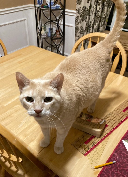As you know, Bob, J.J. had been diagnosed in 2017 with kidney disease, and for the next six years we did everything we could to keep weight on him, including making sure there was always kibble in his bowl and feeding him lots and lots of treats, Lick ‘n’ Lap, and other cat dainties. That more than anything is probably what kept him going until the age of twenty-one.