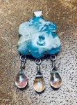 Pendant is 23mm x 24mm (not including bail or droplets). $50 including S&H and a cord necklace. A sterling necklace can be added for an additional $10.