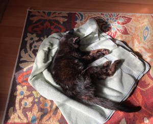 I cancelled the vet appointment and the Elderly Gentleman bounced back for a good week and a half, eating everything offered to him and snoozing happily in sunbeams. He also started developing constipation due to his kidney failure which required daily warm water enemas to help him pass the poop. But hey, I was already giving him sub-q fluids so what was one more medical procedure?